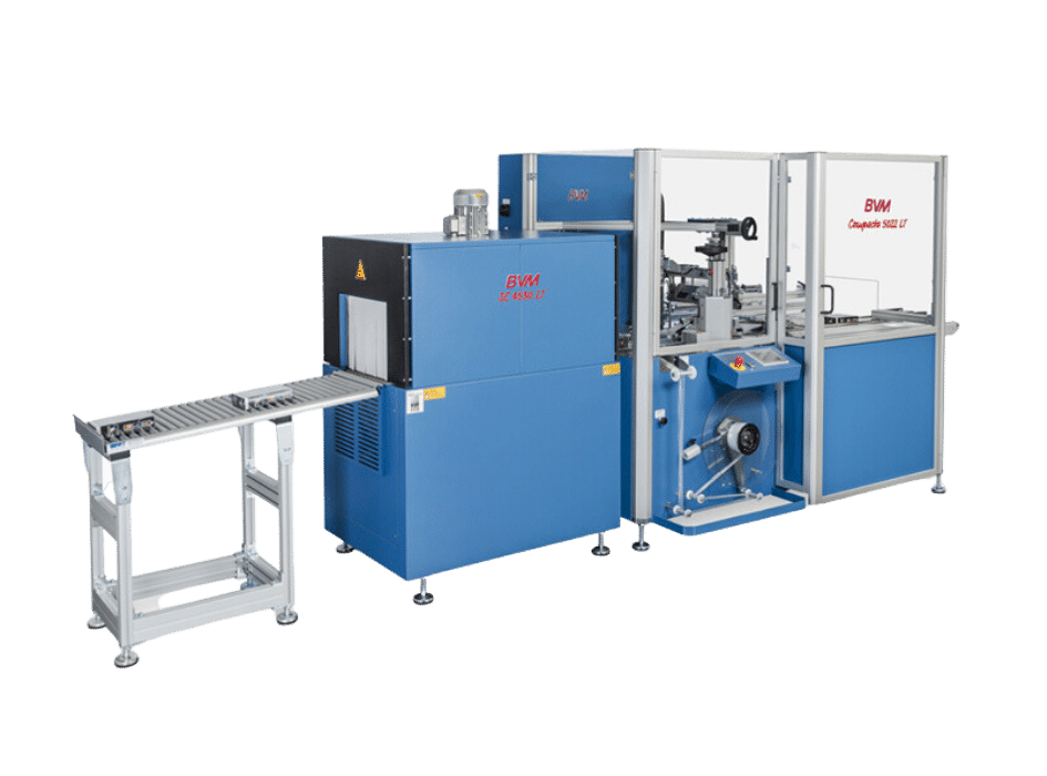 In Linie arbeitend, können diese lichtschrankengesteuerten Verpackungsmaschinen sowohl manuell als auch vollautomatisch beschickt werden.